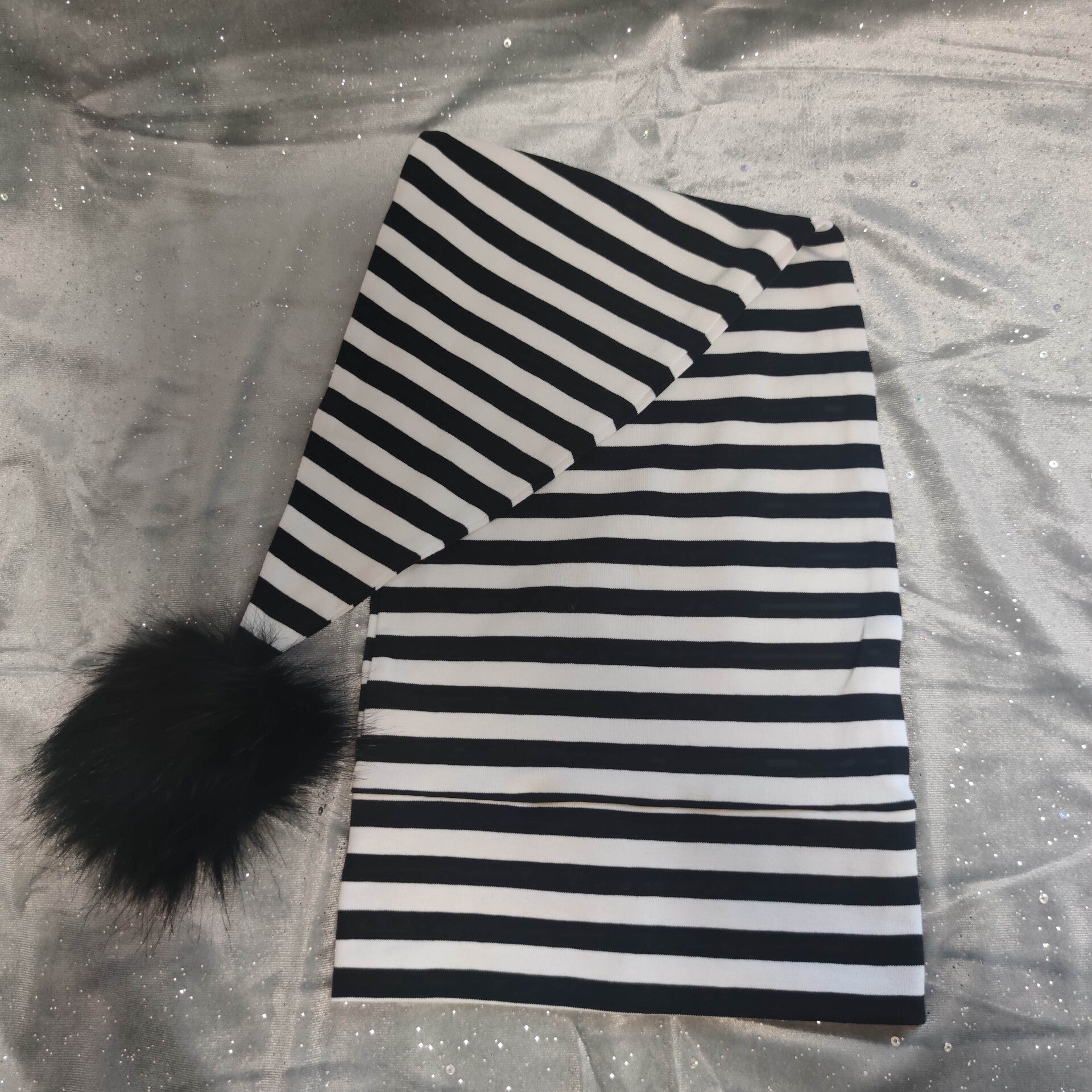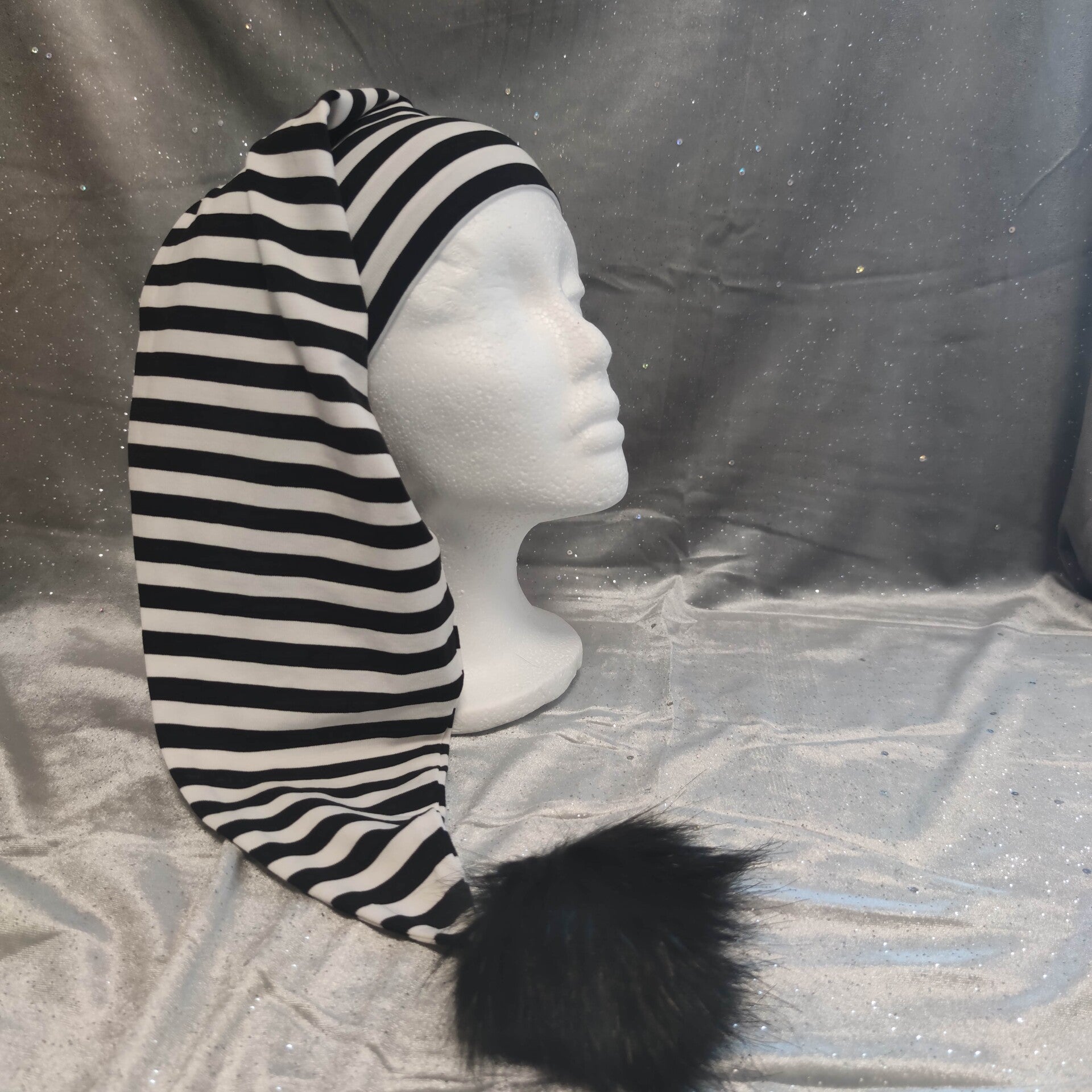 Väri musta-valkoraidallinen, mustalla tupsulla